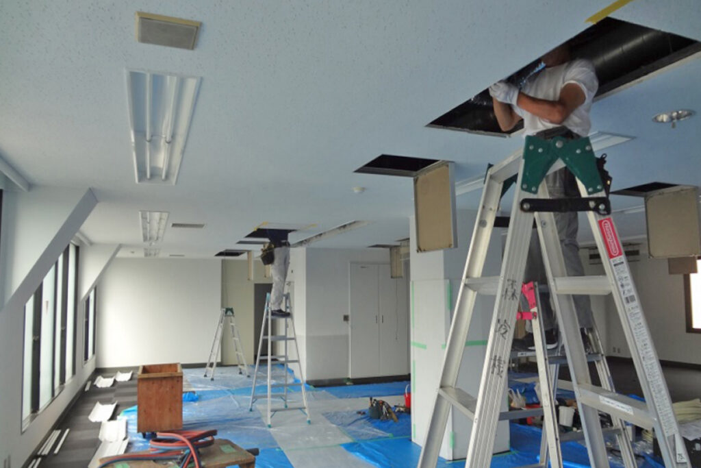 - 退去時に必要となる、内装を契約時の状態に復旧するための工事です。床や天井、壁の仕上げ材や間仕切りなどを撤去・補修します。